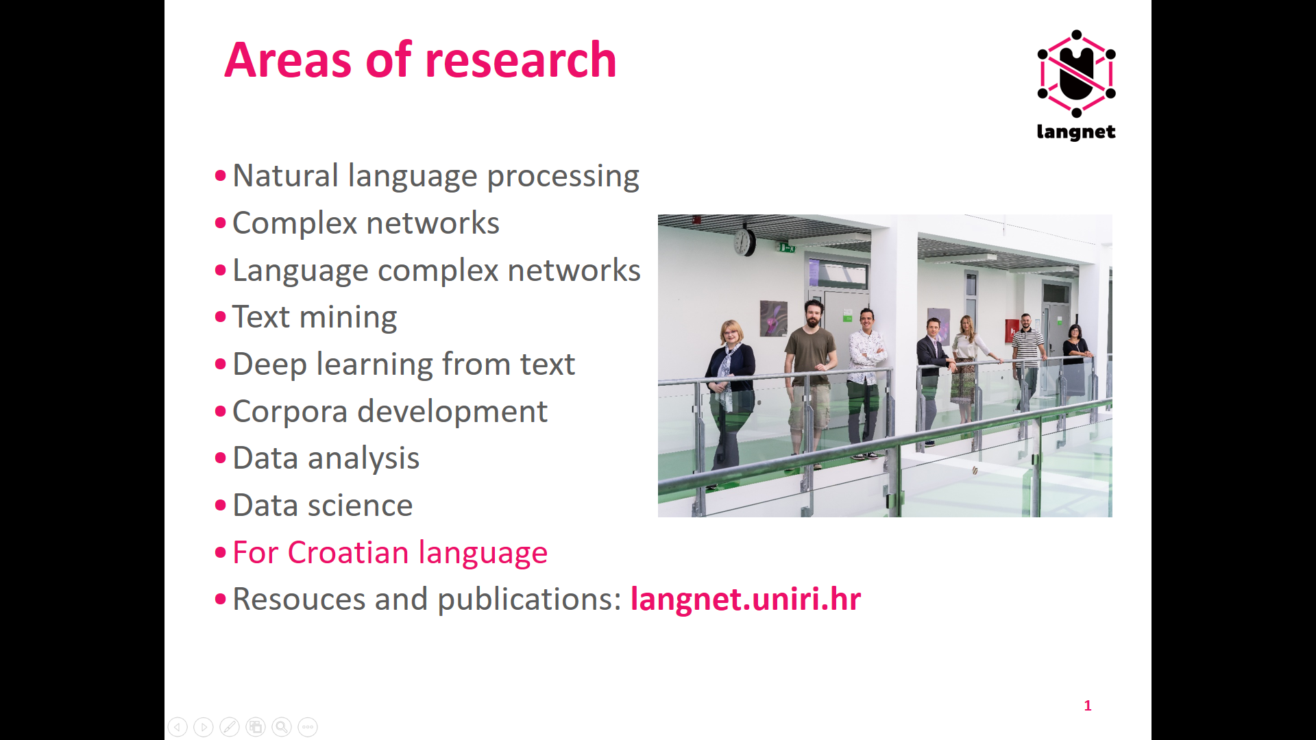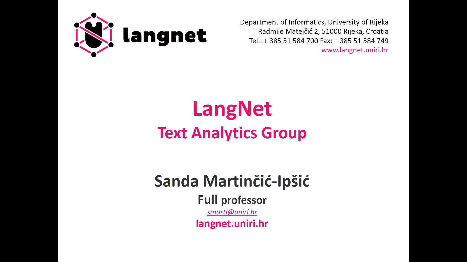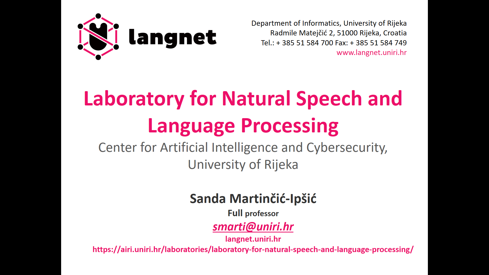 Sanda Martinčić-Ipšić and Ana Meštović presented the current research results and projects of LangNet group included in the Laboratory for Natural Speech and Language Processing at the Centre for Artificial Intelligence and Cybersecurity, University of Rijeka, 31st March 2021. AIRI Centre