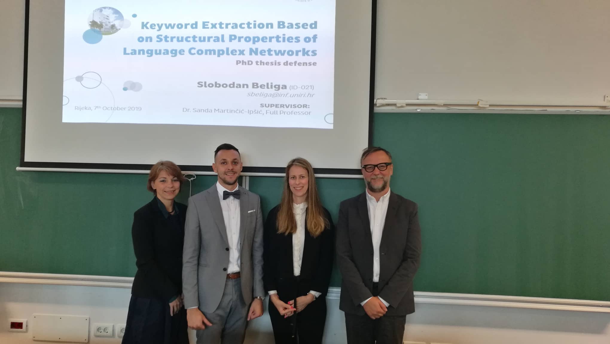 Slobodan Beliga, member of LangNet group defended PhD thesis "Keyword Extraction Based on Structural Properties of Language Complex Networks" at Department of Informatics, University of Rijeka. Congratulations!