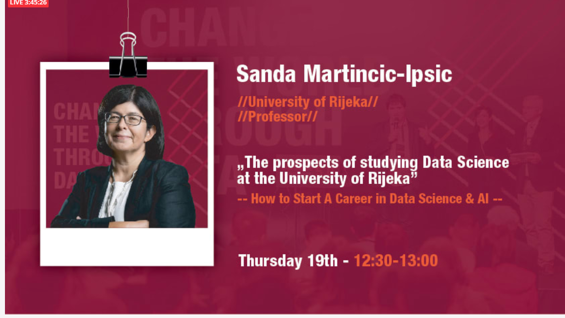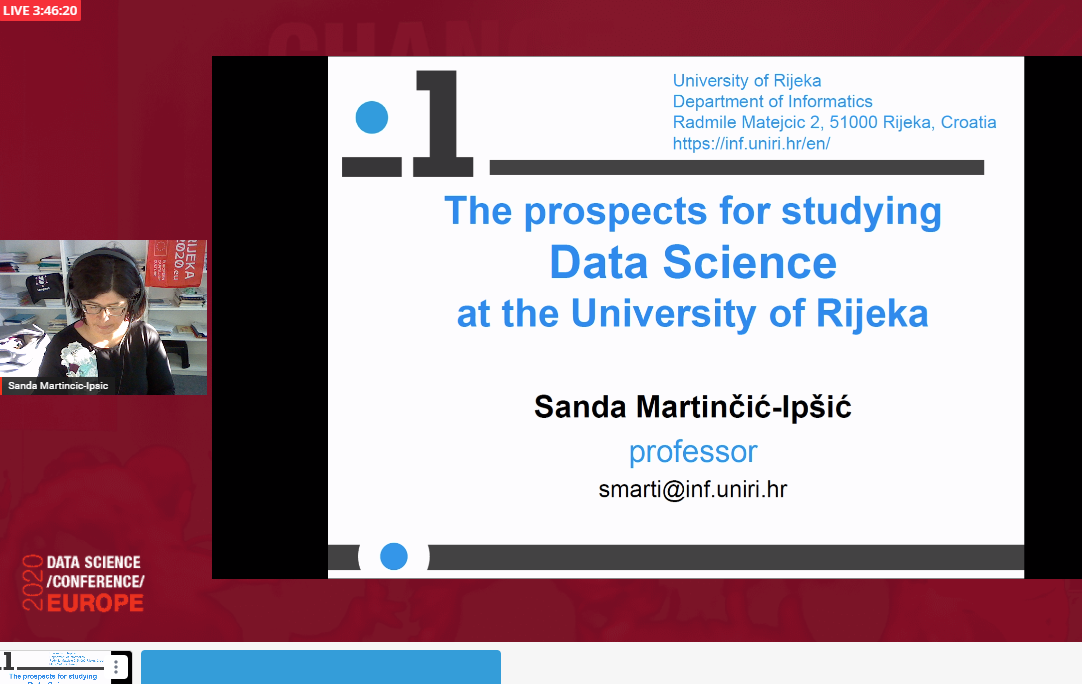 Sanda Martinčić-Ipšić talked about the prospects for studying Data Science at the University of Rijeka and collaboration with the Center for Artificial Intelligence and Cybersecurity at Data Science Conference 2020 Link