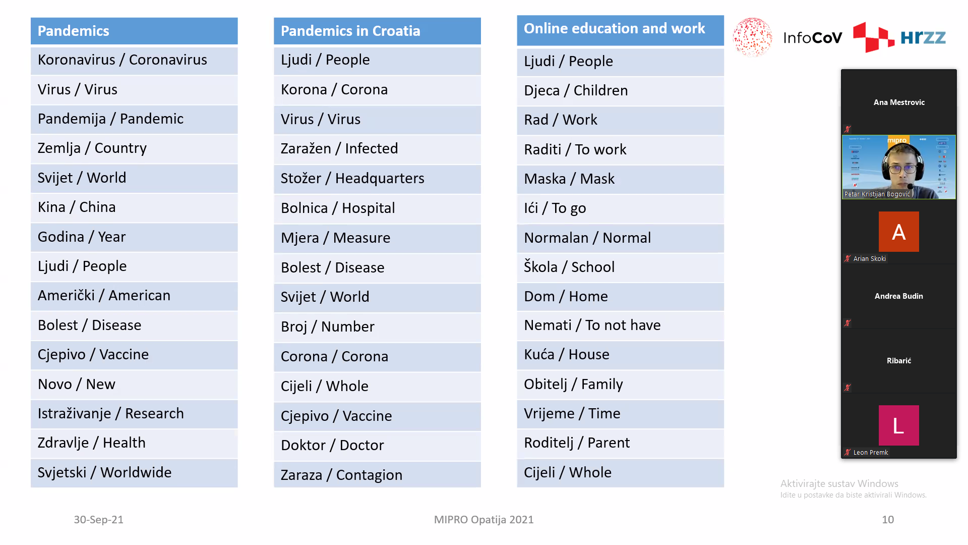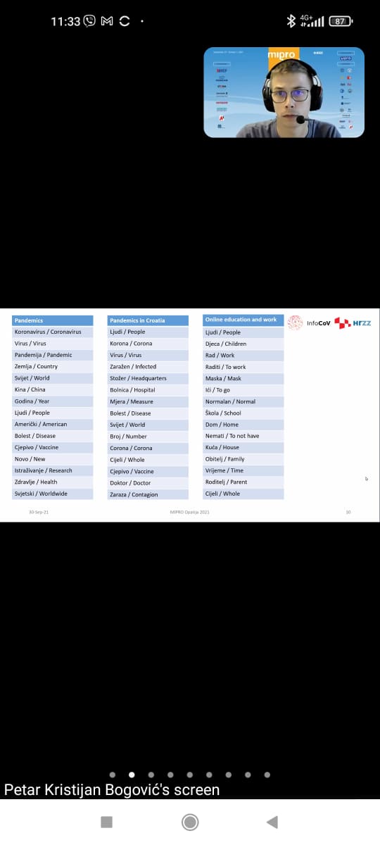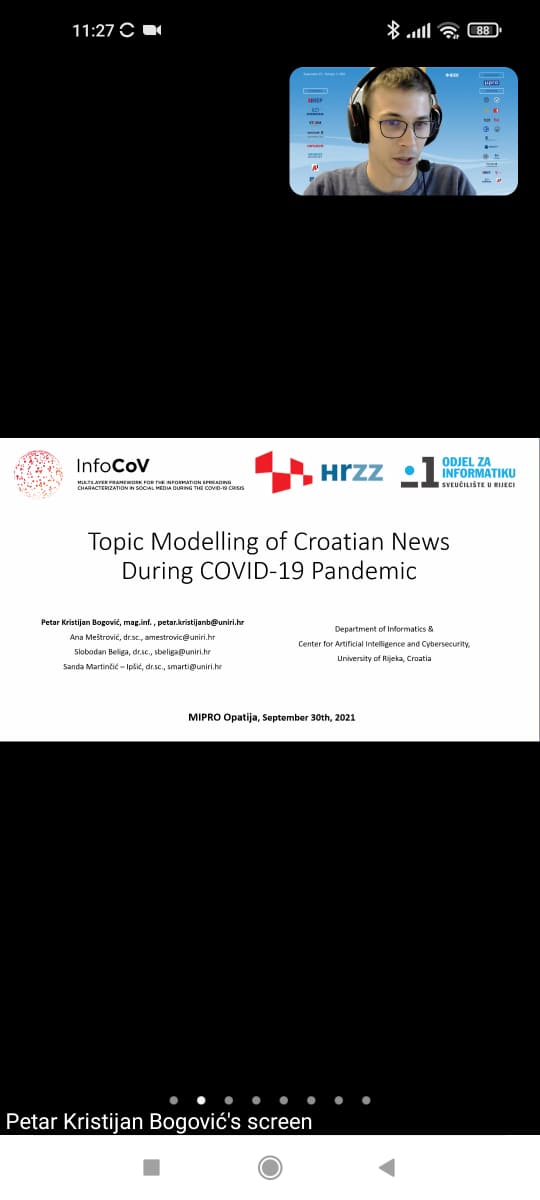Petar Kristijan Bogović presented the paper "Topic Modelling of Croatian News During COVID-19 Pandemic" co-authored with Ana Meštović, Slobodan Beliga andSanda Martinčić-Ipšić IEEE MIPRO 2021 Conference in CIS Section (MIPRO-CIS 2021) , 30.09.2021.