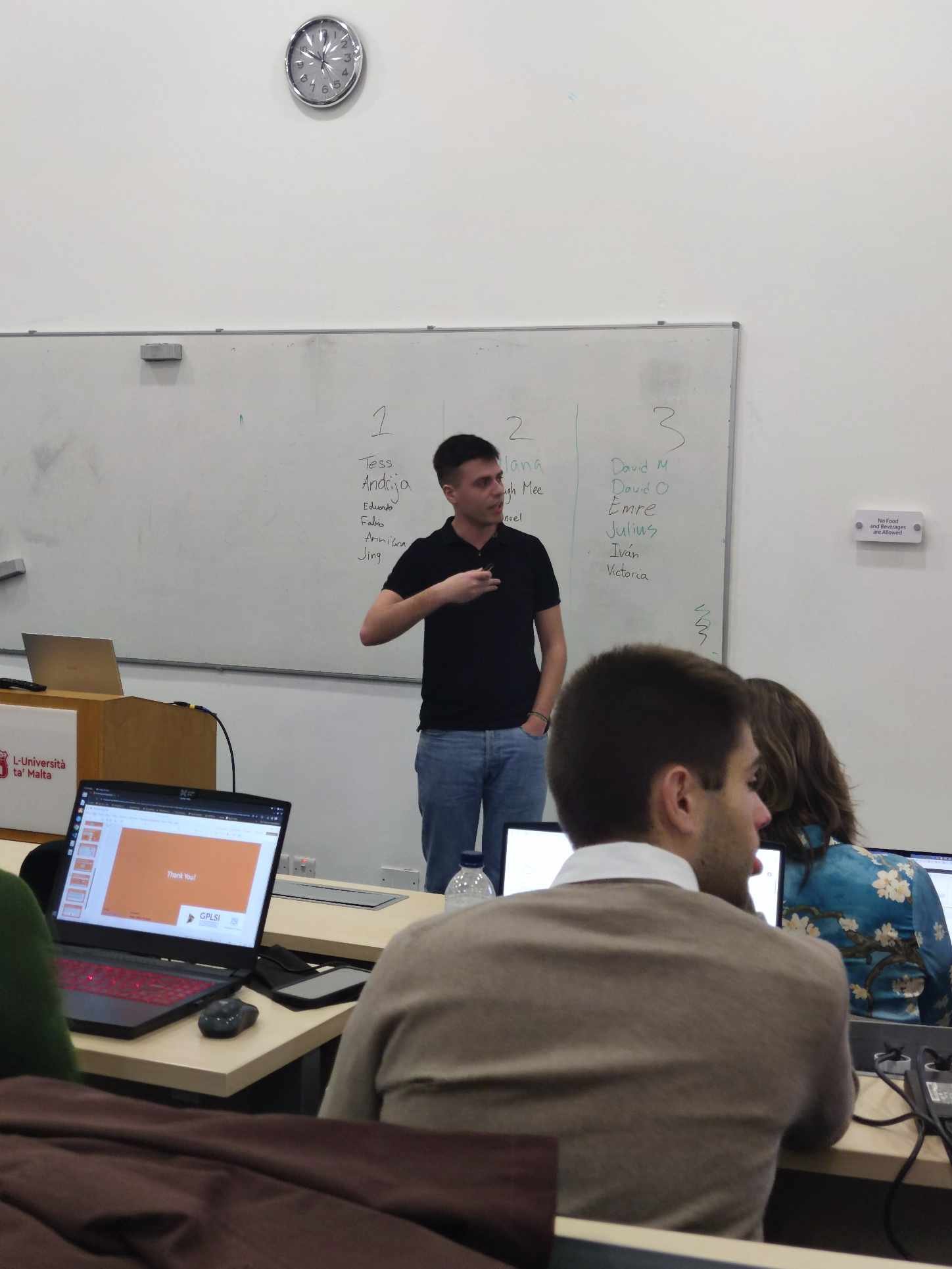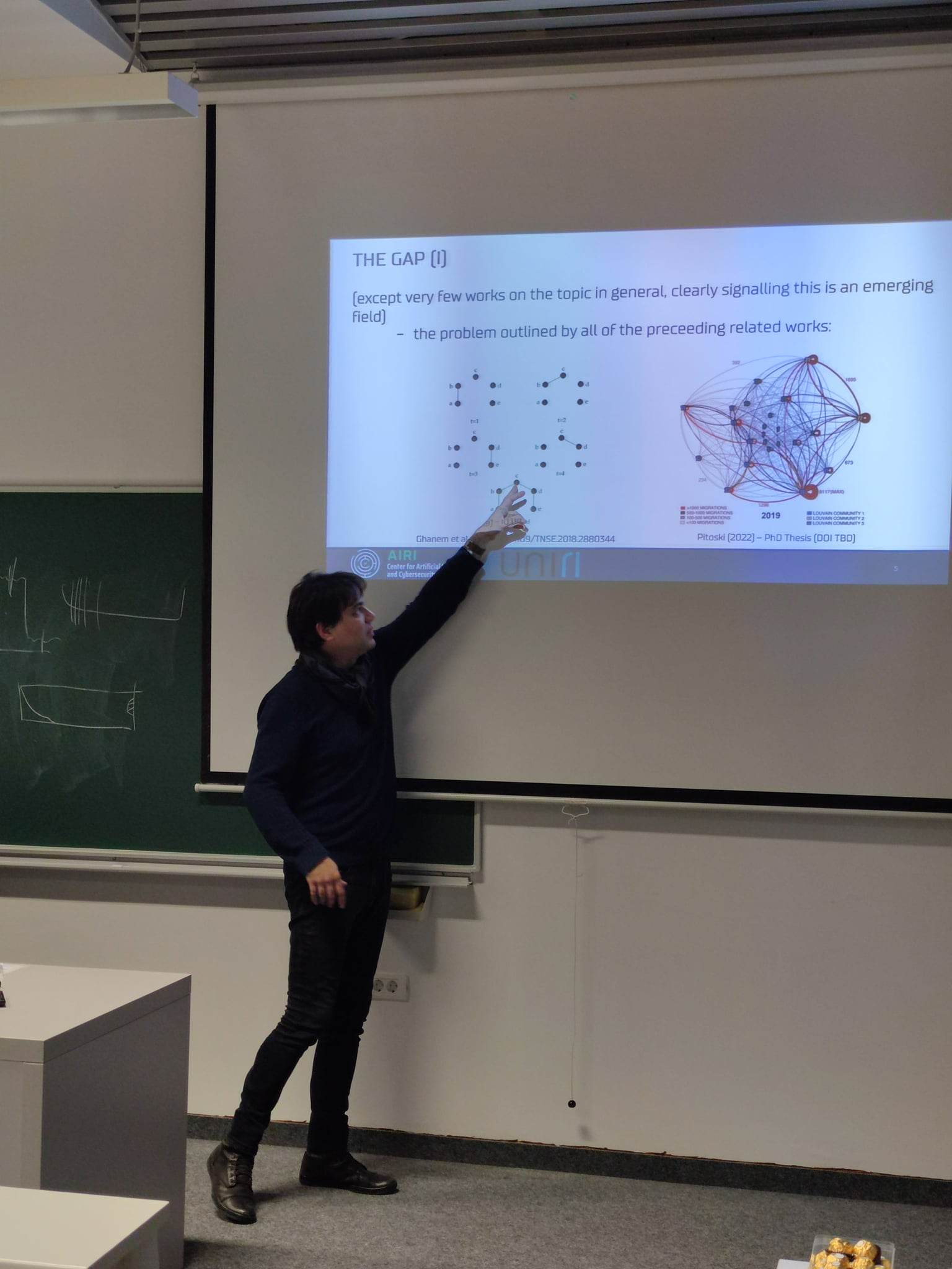 Karlo Babić talked about methods for embedding networks into vector representations.